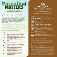 From the delivery room to your child's first steps into adulthood, Islam provides the most comprehensive guidelines in how to raise and nurture them. This course will not only provide knowledge but most importantly practical and relevant steps to facilitate your job as a parent.