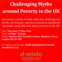 Join Al-Mizan Charitable Trust for our free event on Challenging Myths around Poverty in the UK on Thursday 19 May 2016 from 6:30pm in Central London, where you can hear why these views and other popular opinions about poor people in the UK are completely wrong.