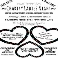 Ladies Charity Night. Fundraising to help rebuild lives in Gaza. Call number on poster for stall enquiries and bookings.