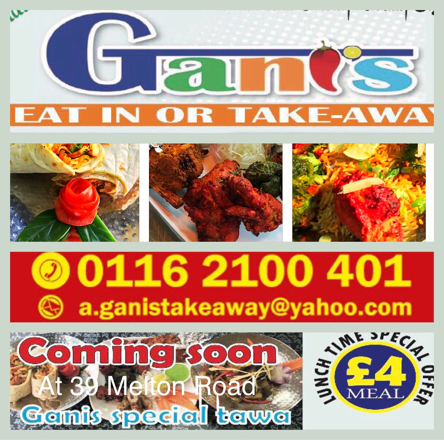 Ganis is not just a fabulous takeaway but it's also a great catering service. So pop in or give them a call on 0116 2100 401, that's 0116 2100 401,