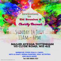 There will be an eid reunion and charity bazaar at Masjid Ayesha Tottenham. ALL WELCOME!