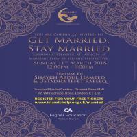 Join us for Get Married, Stay Married. A step-by-step guide on finding the perfect spouse, getting through the wedding day madness and making it out the other side to a fulfilling marriage, all according to the teachings of Islam!