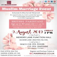 We are excited to announce our 2nd marriage event for *BRITISH PAKISTANIS* on 9th August 2019 at Memory Lane, Bolton.