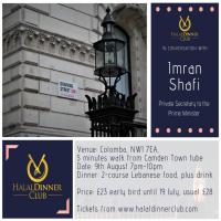 The Halal Dinner Club presents and exciting dinner & conversation with Imran Shafi, Private Secretary to the Prime Minister on Friday 9th August at the Camden venue, Colomba. Working at 10 Downing Street, at the heart of power in the UK, Imran has unique insight into the workings of Number 10, and this event will allow us to speak to Imran about his role and experiences.