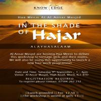 Salaam all! Please see details for our next workshop - 'In the shade of Hajar (AS)'. We're very excited to be hosted by Al Ansar Masjd where we will be launching our new four week course. Join us on Saturday for this workshop and lunch.