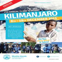 - 'Kilimanjaro 2015' - 8th December 2015 to 18th December 2015, raising funds for the Children of Sub-Saharan Africa, please if you can kindly use when posting #Kilimanjaro2015