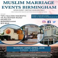 We are holding the next muslim marriage event on Sunday 22ndApril 2018 at Tipu Sultan, 43 Alcester Road, Moseley, Birmingham, B13 8AA