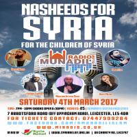 Nasheed for Syria event coming to Leicester on Saturday 4th March at the Memon Centre Leicester, 7 Abbotsford Road (off Uppingham Road) LE5 4DA.