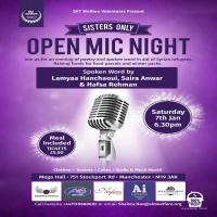 SKT Welfare Volunteers Present: Open Mic Night | Sisters Only | with spoken words by the amazing Lamyaa Hanchaoui - Saira Anwar - Hafsa Rehman | Saturday 7th January 2017 - 6.30pm | Mega Hall, 751 Stockport Road, Manchester, M19 3AR | Tickets Only 5 pounds | 100% donation policy | In aid of the Winter Packs and Food Distribution inside #Syria | Get your tickets now!!! Call Farzana: 07518888682 | Email: shaista.naz@sktwelfare.org | please spread the word | #TeamSKT #TeamHumanity #TeamPoetry