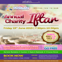 Ramadan is now fast approaching and INSAAN would like to invite you all to our Annual Charity Iftar - an evening filled with Qur’anic recitation, naats/nasheeds, auction (some special items on offer!) and a 3 course dinner.