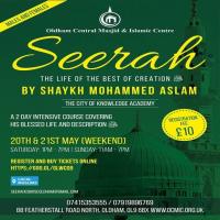 Shaykh Mohammed Aslam will be delivering a 2 day intensive course on the life of the best of creation. ï·º
