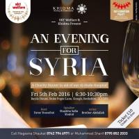 SKT Welfare and Khidma proudly present 'An Evening For Syria.' A charity dinner in aid of SKT Welfare's Al-Huda Hospital.