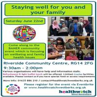 ‘Staying Well for you and your family’ is an #engagement event to find out ‘what matters most’ for people from the Black, Asian, Minority Ethnic and Refugee (BAMER) Community living in #WestBerkshire, If you know anyone who would benefit from attending and giving #feedback about their experience, please share. Registration for this event is on Eventbrite or on www.healthwatchwestberks.org.uk.