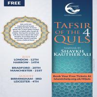 Join us for an incredible evening seminar as we explore the tafsir and virtues behind Surah Al-Kafiroon, Surah Al-Ikhlas, Surah Al-Falaq and Surah An-Nas, commonly reffered to as The 4 Quls.
