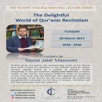 Neither prose nor poetry, the mesmerising verses of the Qur’an have been recited for centuries in the Muslim world by master reciters (qurrÄ’) based on a system of melodic modes (maqÄmÄt). In this presentation, Sayed Jalal Masoomi, a master reciter of the Qur’an, will present different styles of recitation of this holy book and will delineate the appropriate styles for each passage in the Qur’an. He will also examine the traditional jurisprudential resistance to the idea of melodic recitation and will take questions from the audience.